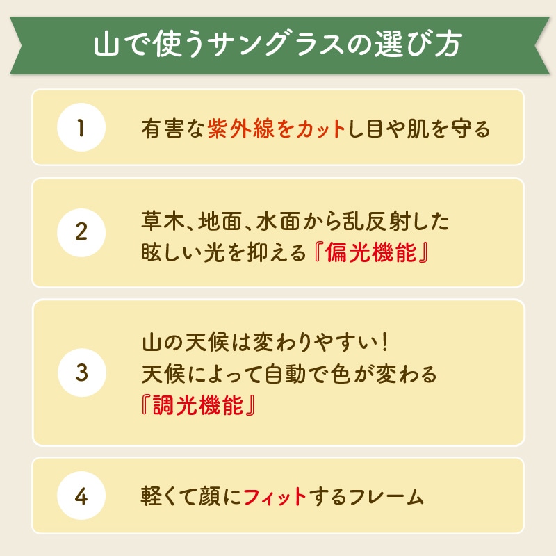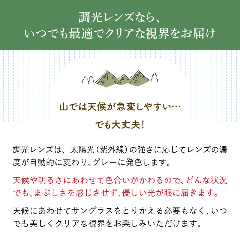【眩しさや紫外線から眼を守る調光偏光サングラス】outdoorにはサングラスが必須アイテム! 用途は色々