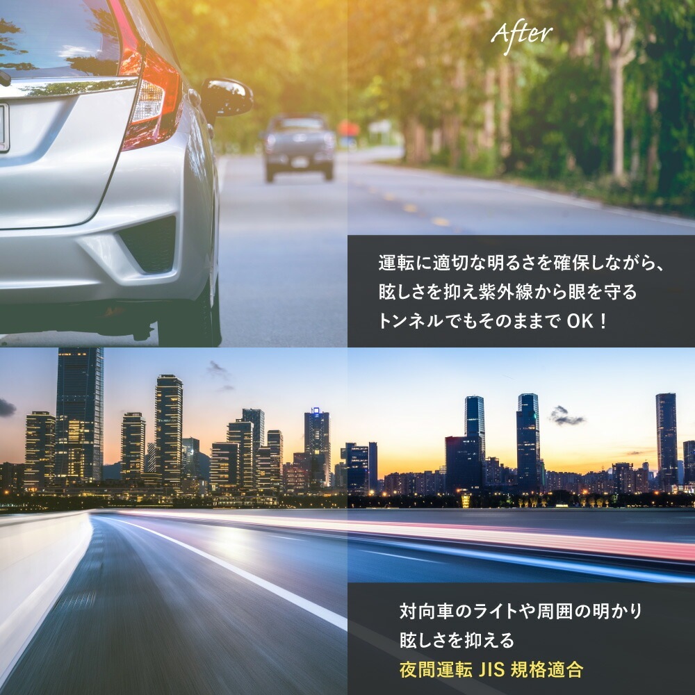 夜間ヘッドライトの眩しさも軽減 夜間運転 での眼の疲れを抑えてくれます。